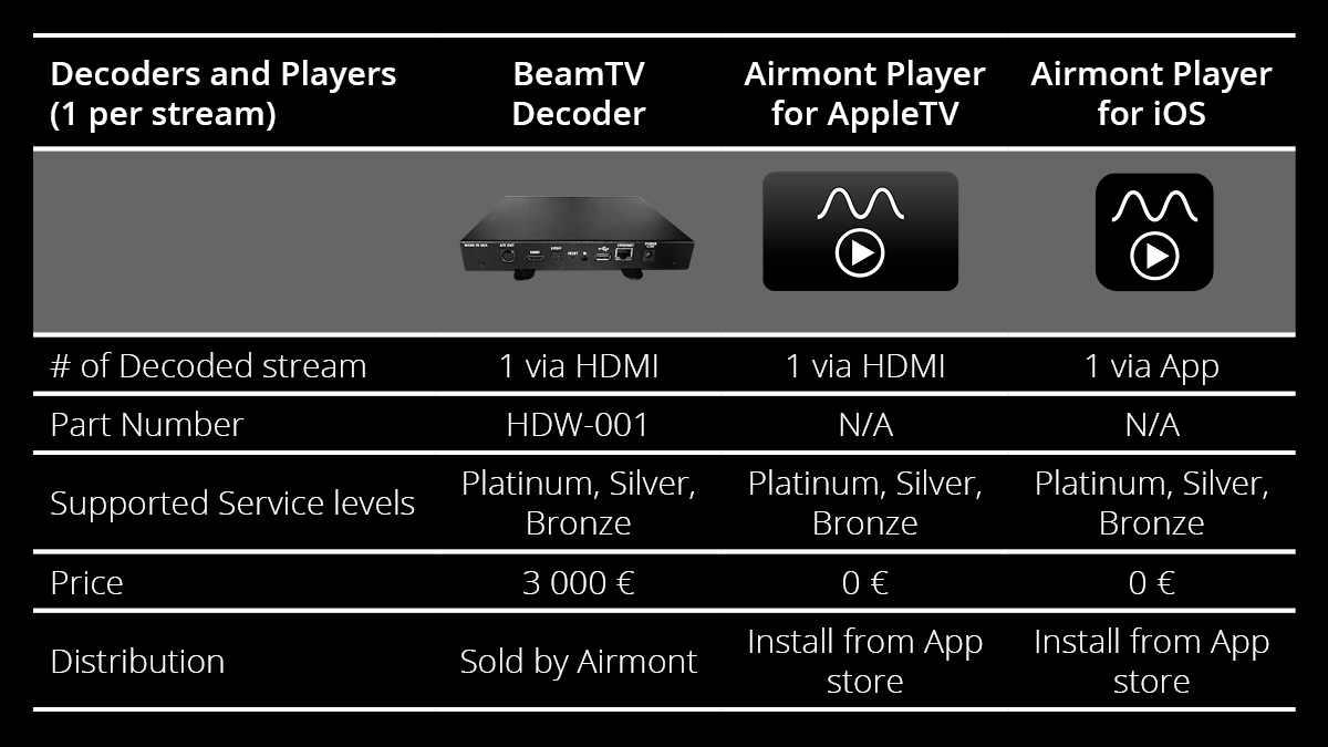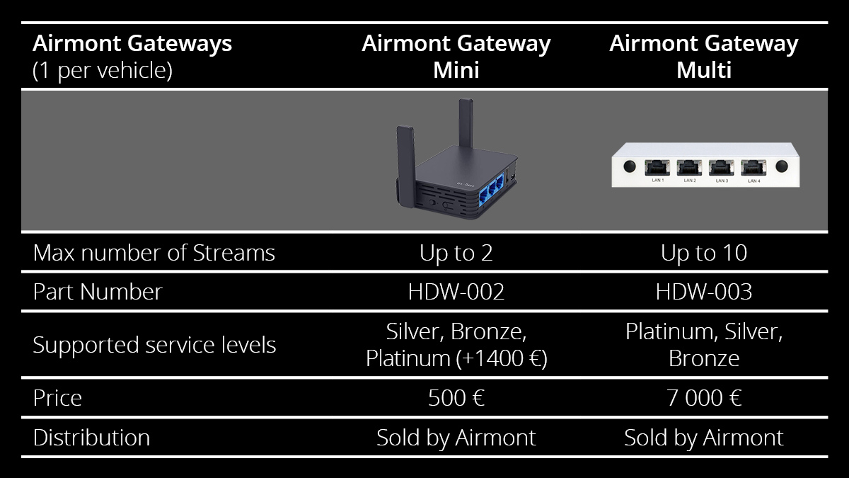 Airmont streaming optimization requires the following: one onboard Airmont gateway + one decoder per one onboard stream + a valid subscription with the required number of streams.